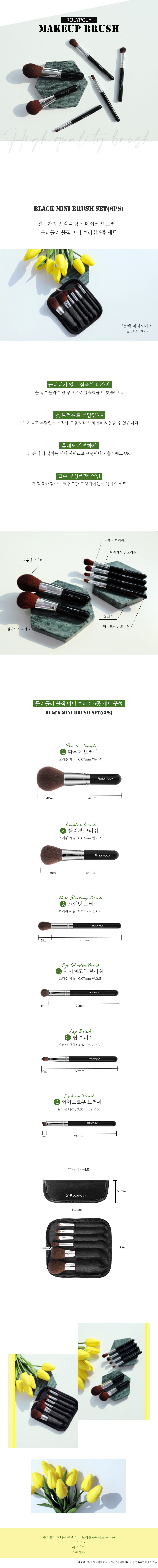 롤리폴리 여행용 블랙 미니브러쉬 6종세트 휴대용 파우더 블러셔 하이라이터 아이섀도우 메이크