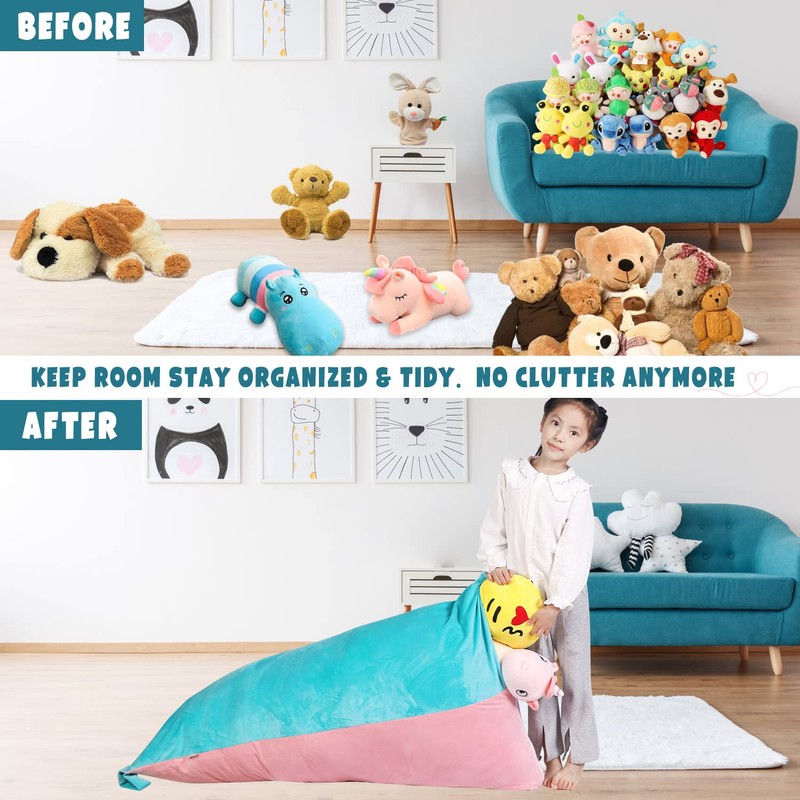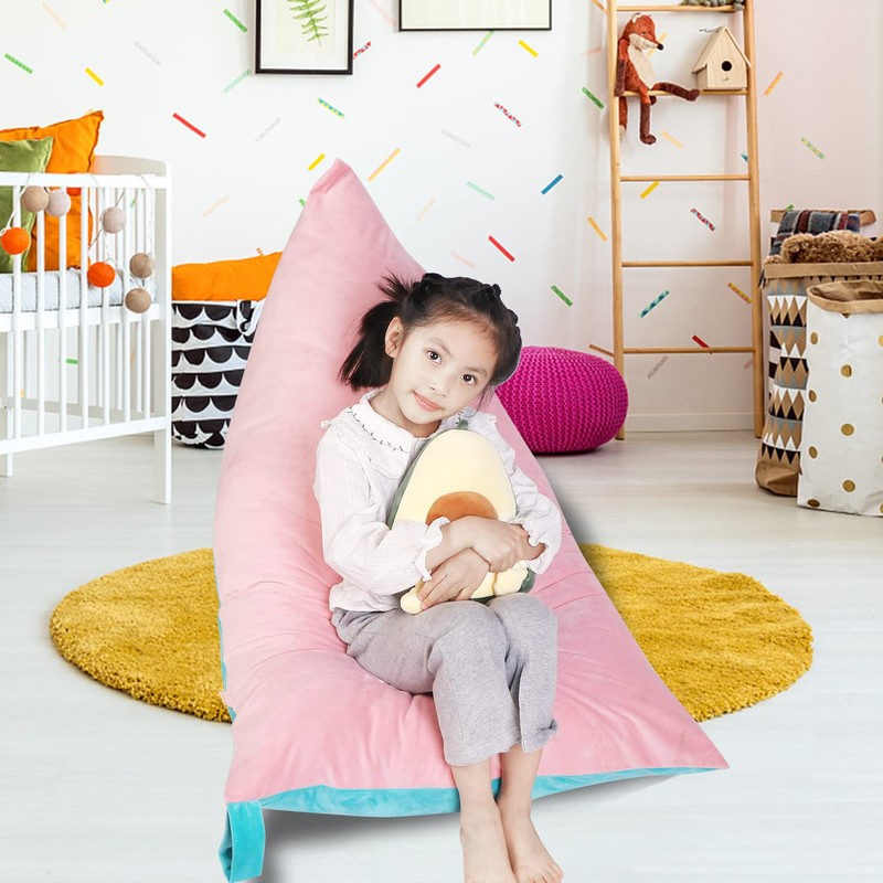- ★ STUFFED ANIMAL STORAGE SOLUTION: When the bean bag is filled with plush toys or other soft items, it can be used as a chair or sofa for kids/teens/adults to read, relax, sleep, jump, watch TV, or play games. When fully stuffed, the triangular shape provides comfortable seating with head and back support. In addition, the bean bag makes your kid's room stay organized, keeps the room tidy, and has no clutter anymore. An effective solution for storage and saving space.