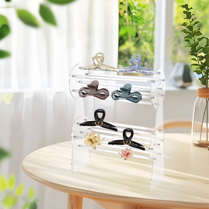 - Clear Acrylic Holder: Made of premium quality acrylic, this transparent and durable claw clip holder provides convenient storage and an elegant display for your clips