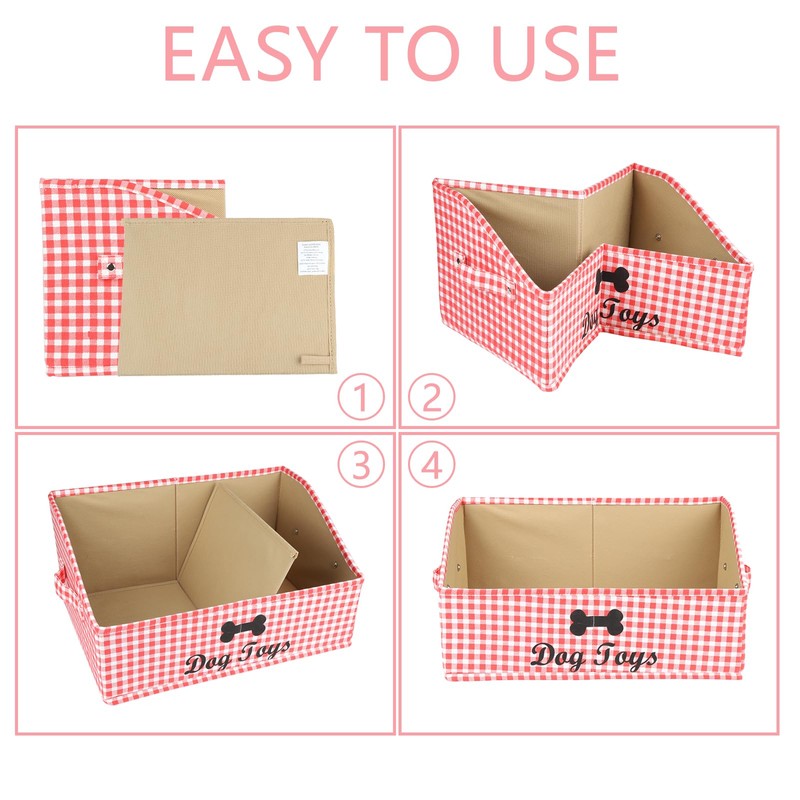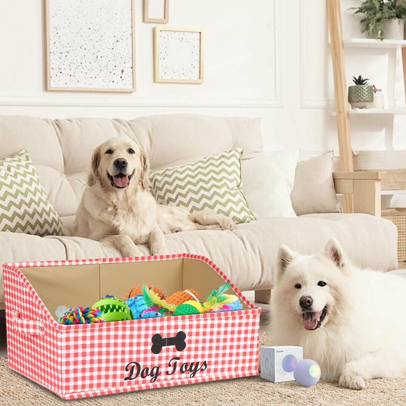 - Stylish Home Decor Addition: The checkered design of this dog toy bin adds a touch of elegance to any room. Its trapezoid shape not only looks unique but also allows for easy access to your pet’s favourite items.
