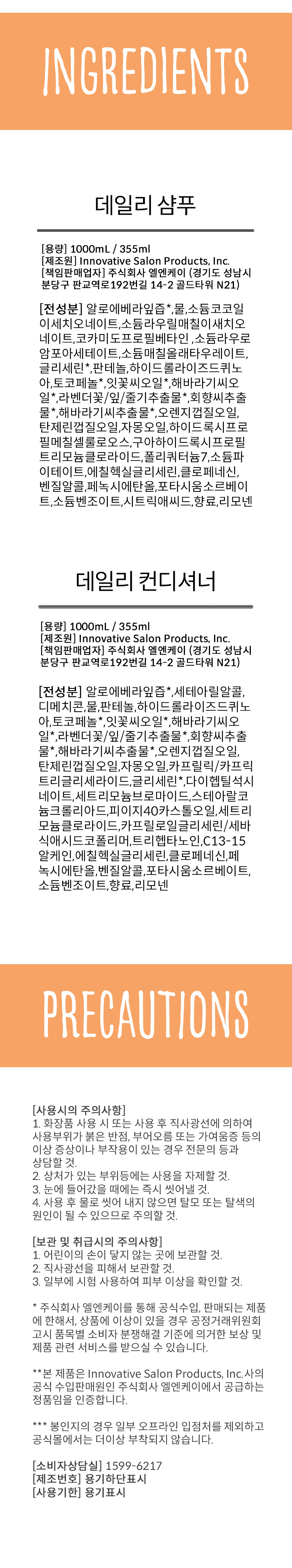 내용물의 용량 및 중량 : 데일리 샴푸 1L /데일리 컨디셔너 1L /랜덤 바디라인 정품 본품 1개