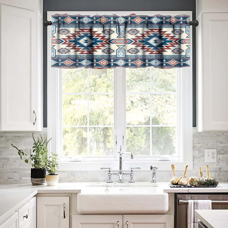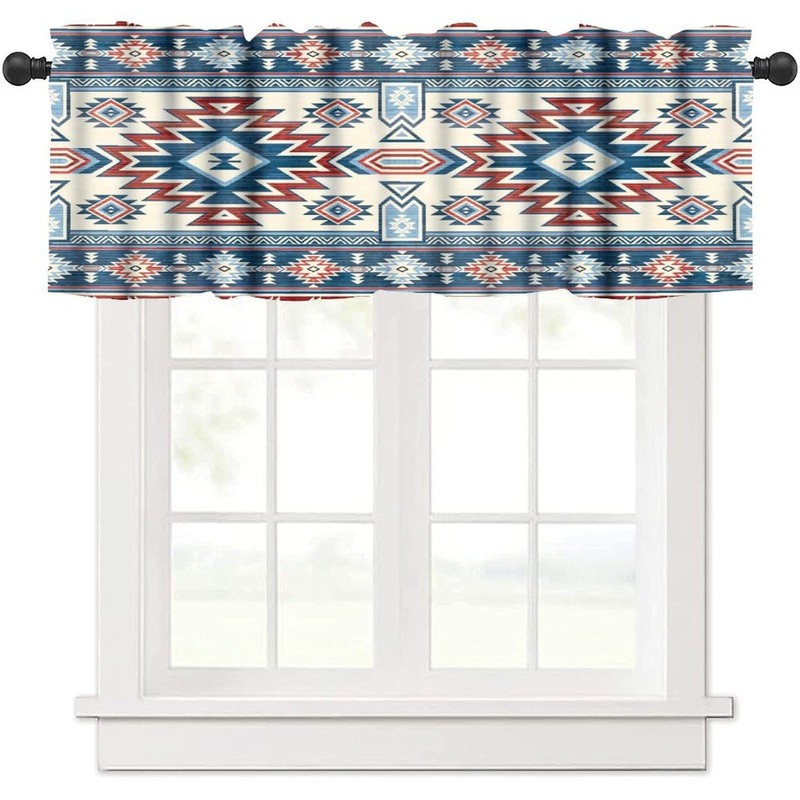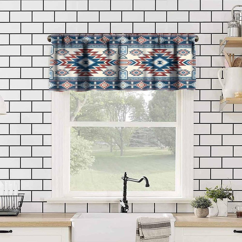 LOMADIA Aztec Valance Curtain for Kitchen, Window Treatment Southwestern Ethnic Aztec Tribal Bohemian Patterm Rod Pocket Drapes for Living Room Bedroom Cafe Decor 54x18inch