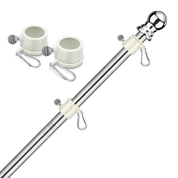 - [Adjustable Length]: This 6ft adjustable flag pole is composed of five detachable stainless steel tubes, you can adjust the length of the flagpole according to the size of the flag, this sturdy flag pole is generally suitable for 2x3, 3x5, 4x6 flags, of course you can also You can make your favorite flag size according to the length of the flagpole.