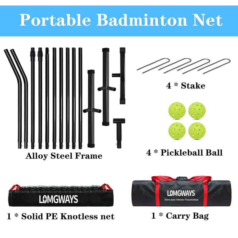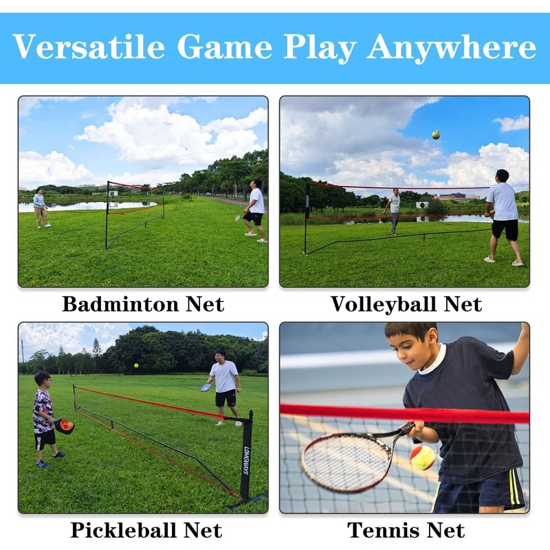 LOMGWAYS Pickleball Badminton Net - 20FT Adjustable Portable Pickleball Net for Pickleball,Tennis,Badminton with Pickleball and Carry Bag,Small Pickleball Net for Backyard,Beach,Driveway,Easy Setup