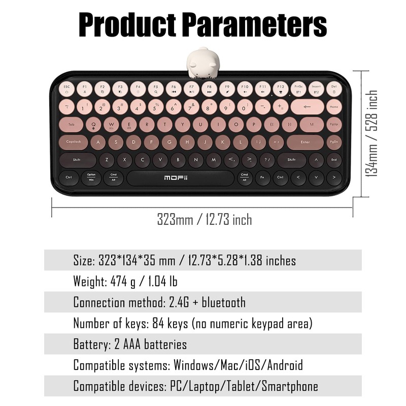 - [Cute Magnetic Bear] The cute little bear can be magnetically attached to the top center of the keyboard. It can also be removed and placed separately on the table.With cute bear by your side, you can type and work more happily.