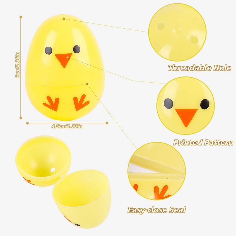 - DESIGN FEATURE: You will receive a pack of 48 Easter plastic eggshells designed for yellow, simple but atmospheric, bright and more eye-catching; each eggshell is printed with the chick’ s eyes, mouth and feet, making the whole egg look like a chick, so cute and perfect for Easter-themed activities and decorations