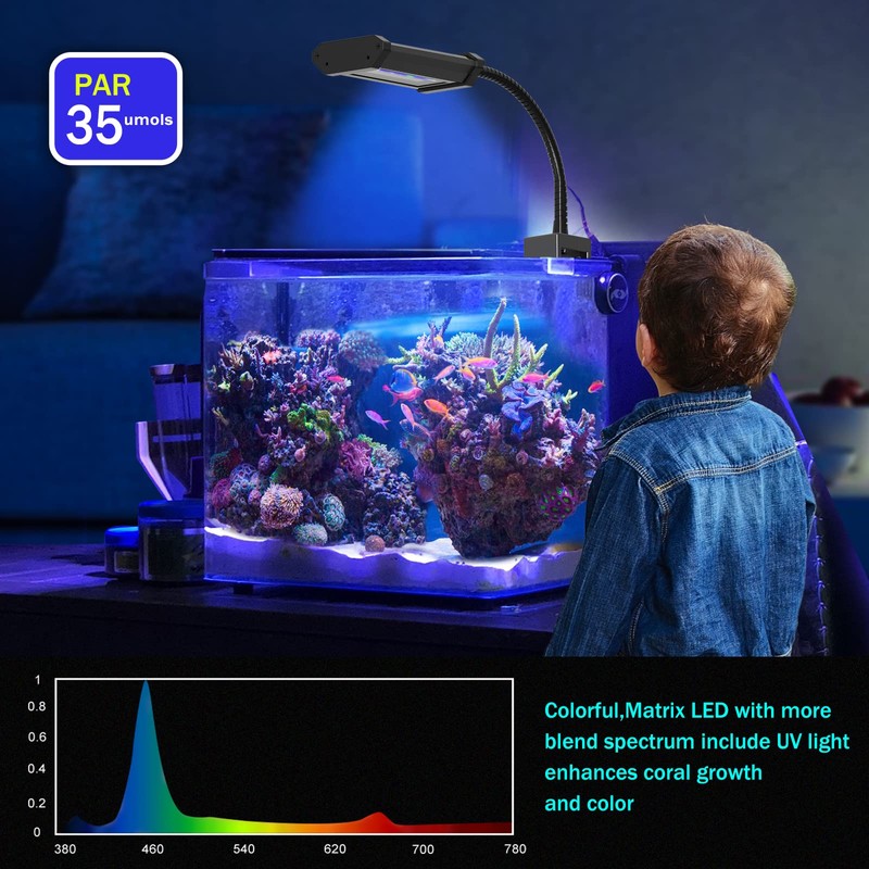 - Good for Plants and Live Fish: Our aquarium lights for fish tank use 2835 LED sources,provide evenly distributed lighting and strong transmittance is enough for your corals, plants and fish to thrive instead of withering away after a few weeks! Perfect for your mini desktop aquarium.