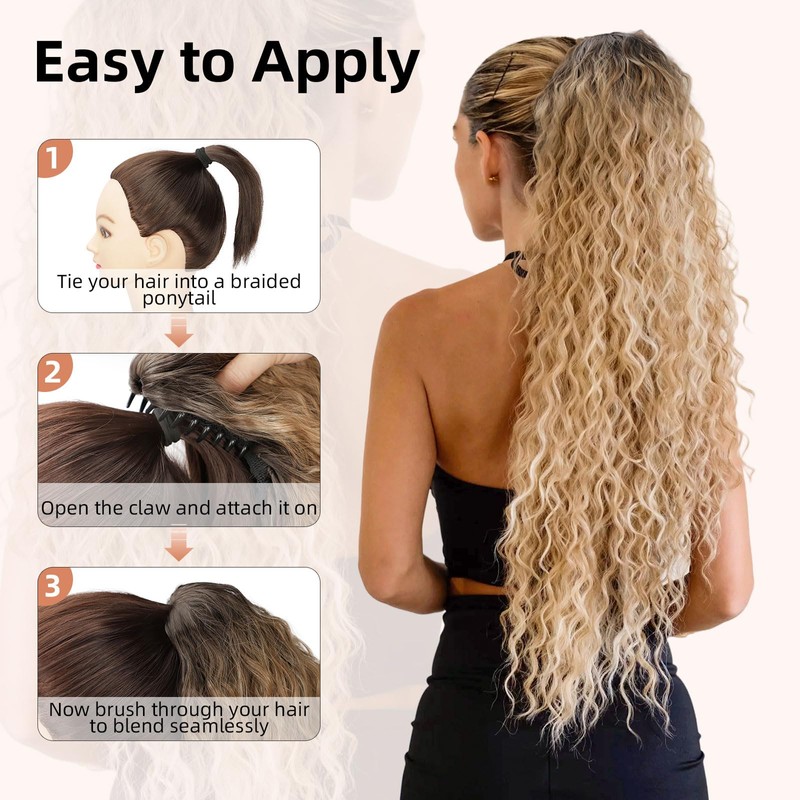 - 【Easy to Wear】 With our pony tails hair extensions, you only need to open the ponytail top claw clip and clip the ponytail extension on your own bun or ponytail. It can be done in one step, perfect for busy mornings, last-minute plans or elegant events.
