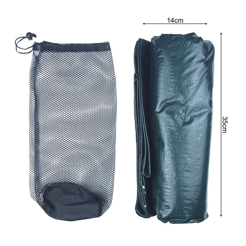 - 110gm/m2 rip-stop polyethylene. Compact with Mesh Bag