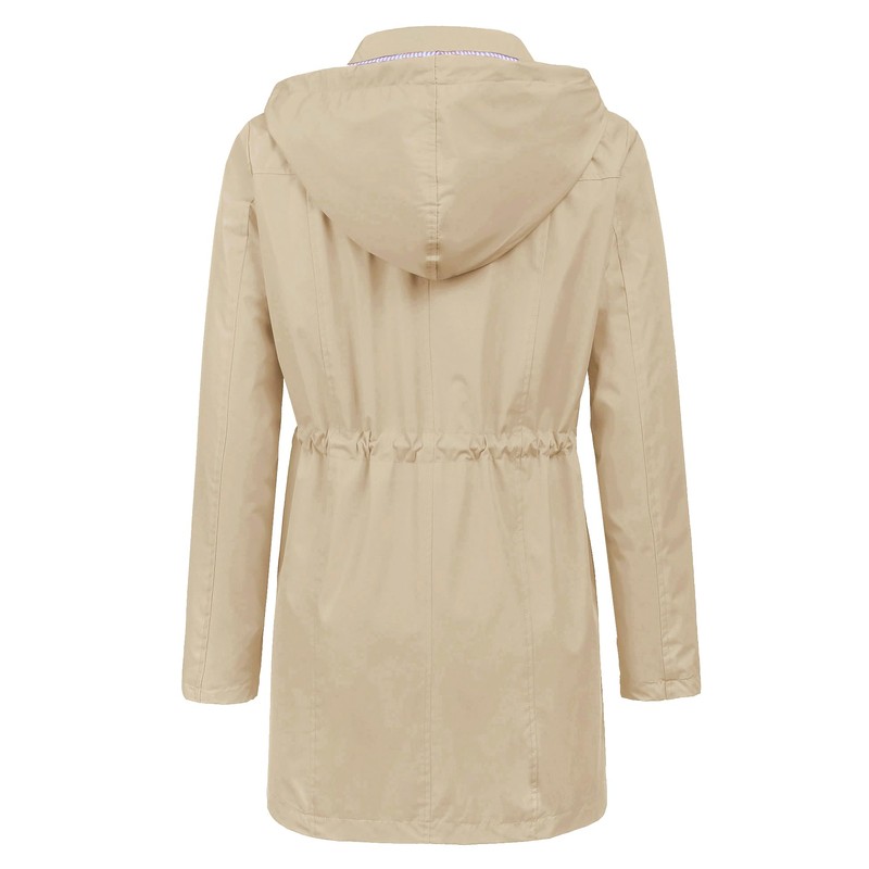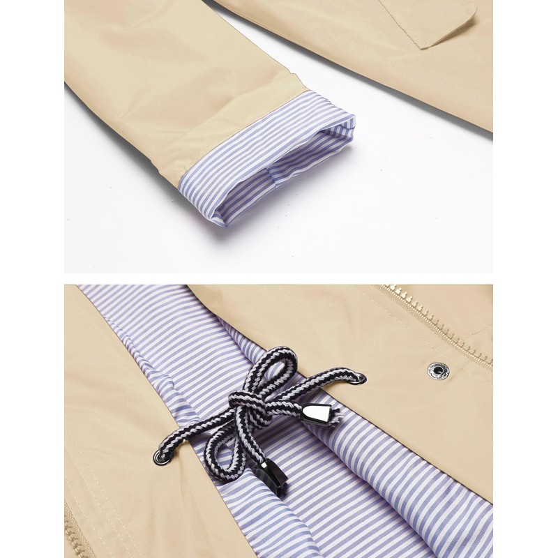 LOMON Raincoat Women Waterproof Long Hooded Trench Coats Lined Windbreaker Travel Jacket Khaki S