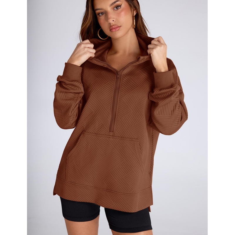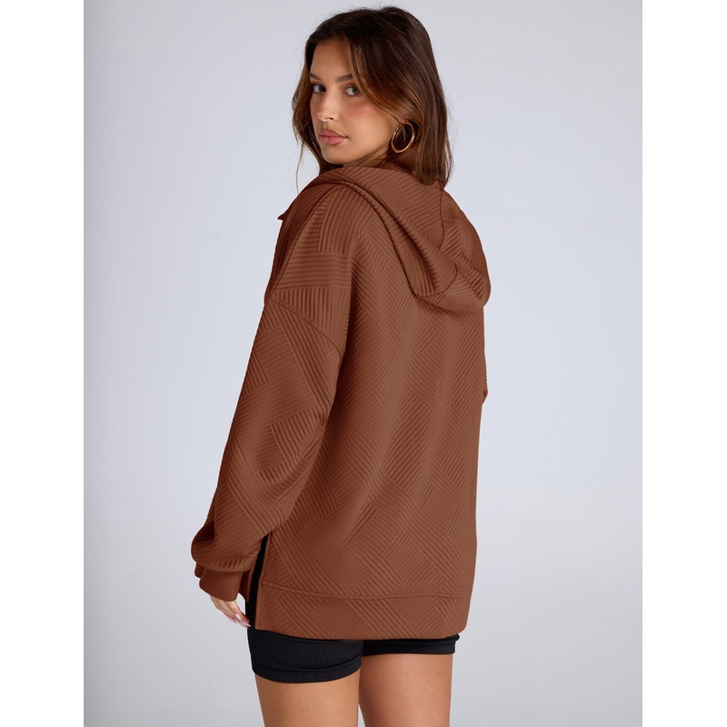 LOMON Women's Oversized Sweatshirts Textured Half Zip Hoodies Tops Side Slits Long Sleeve Pullover Shirts