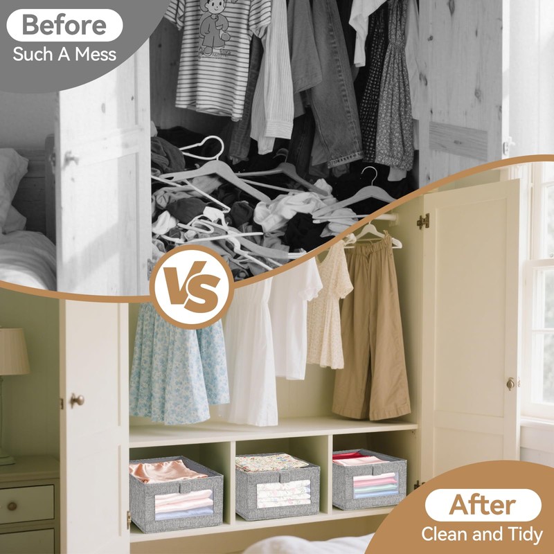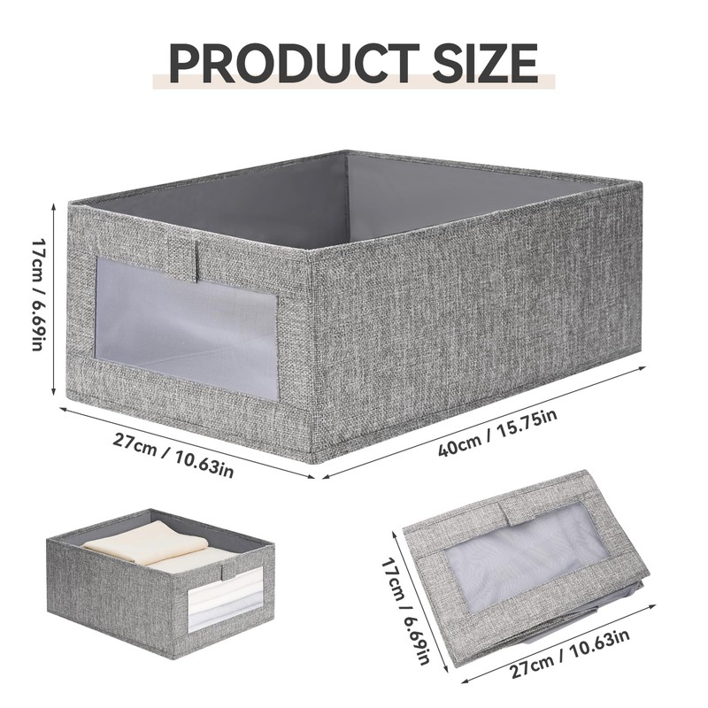 - Folding box with transparent viewing window: the foldable storage box fits in any corner of the room. Save space in the clothes storage areas of your home, such as wardrobes, closets, changing tables, bathrooms or children's rooms, offices, playrooms.
