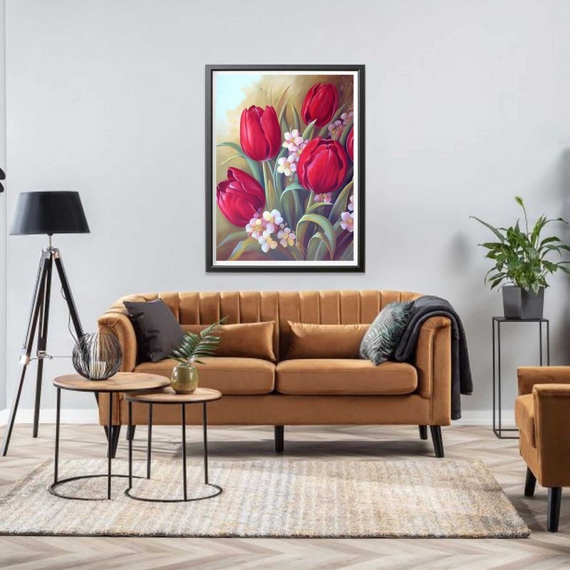 LOMSIOY DIY 5D Diamond Art Kits for Adults, Tulip Diamond Painting Kits for Beginner, Flower Diamond Art with Round Full Drill Rhinestone Crafts Gem Arts for Home Wall Decor 12 * 16 inch