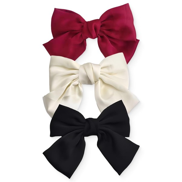 LOMSUXA Pack of 3 Bow Hair Clips, Hair Clips with Bow, Women's French Hair Clips, Girls Hair Clips (Black, Beige and Red)