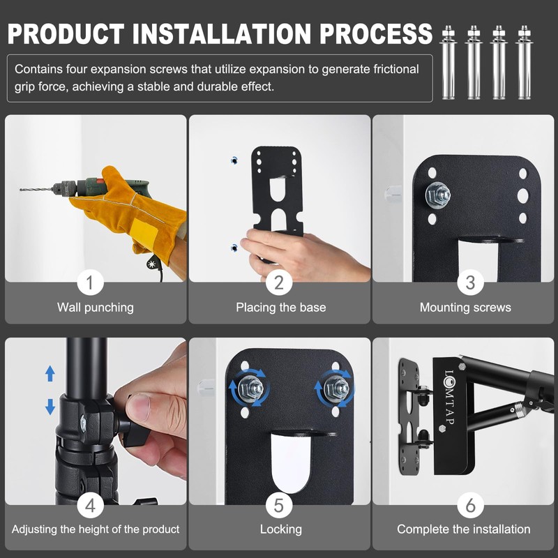 Easy Installation and UseWe've designed this wall mount with convenience in mind. It comes with four expansion screws and a detailed installation guide, making setup quick and straightforward. The included velcro strap adds to its portability, allowing for easy adjustments and storage when needed.