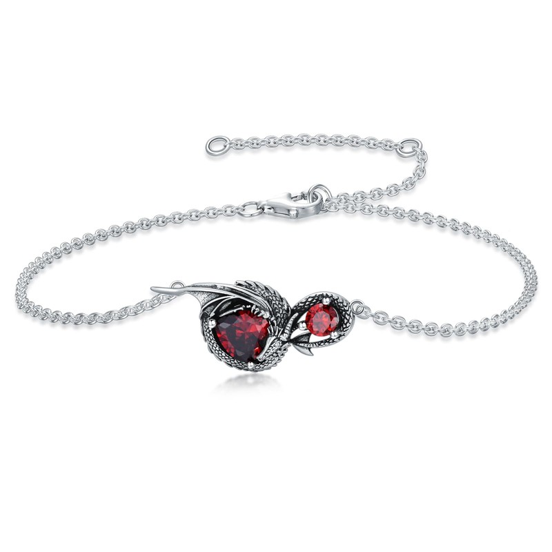 LONAGO Dragon Bracelet for Women 925 Sterling Silver Dragon with Red Heart Link Bracelet