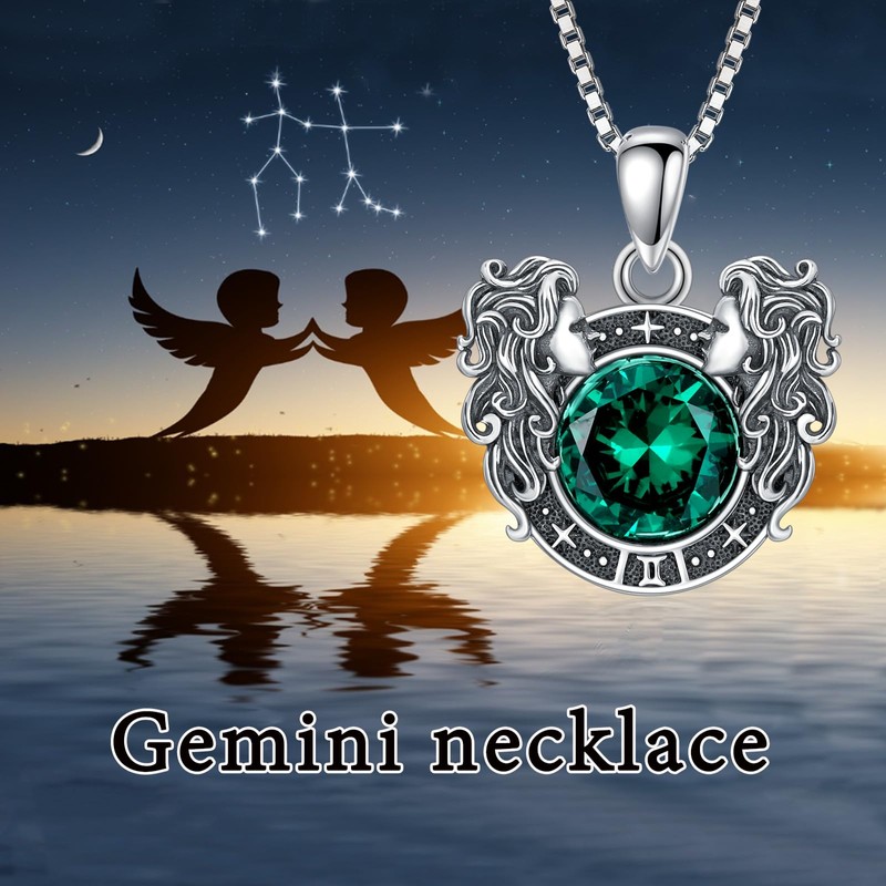 • Design: Gemini Zodiac Sign Necklace with May Birthstone. Gemini, the third sign in the zodiac, belongs to those born between May 21st and June 20th. Gemini traits is versatile, expressive, curious and kind.