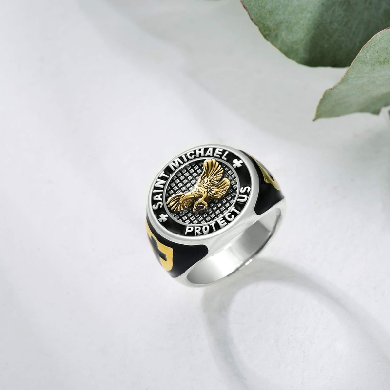 LONAGO Men Ring Patriotic USA Flying American Bald Eagle Ring 925 Sterling Silver Man Stacking Ring Gifts for Father Friends (silver and yellow, 10)
