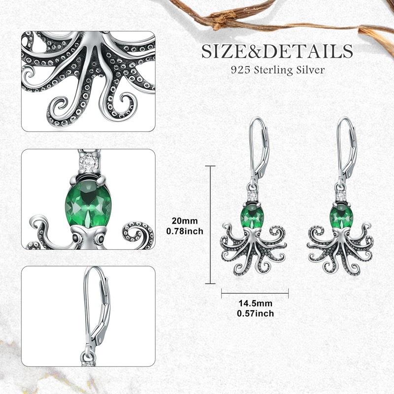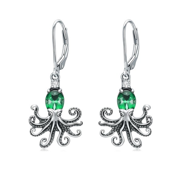 LONAGO Octopus Earrings for Women 925 Sterling Silver Ocean Theme Octopus Drop Earrings (May)