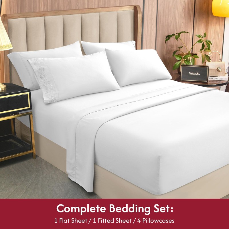 - Complete 6 Piece Set - This luxury full sheet set includes 2 pillowcase with elegant embroidery detail, a flat sheet (81"x 96"), a fitted sheet (54"x 75"+16"), and 2 additional pillowcase (20"x 30") for added convenience and style.
