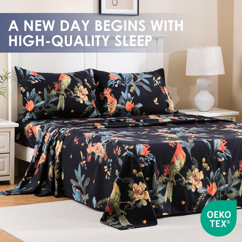 LONAVA King Sheet Set 4 Pieces,Z-Enchanted Aviary Ultra Soft & Breathable Microbifer Sheets, 1600 Thread Count Hotel Luxury Oeko-Tex Bed Sheets, 14-16 Inch Deep Pocket Durable Wrinkle Free Sheets