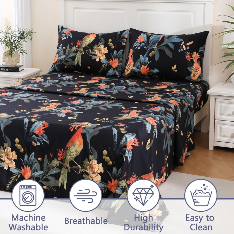 LONAVA King Sheet Set 4 Pieces,Z-Enchanted Aviary Ultra Soft & Breathable Microbifer Sheets, 1600 Thread Count Hotel Luxury Oeko-Tex Bed Sheets, 14-16 Inch Deep Pocket Durable Wrinkle Free Sheets