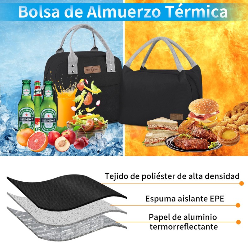 Lonchera para mujer y hombre 2 PCS impermeable Bolsa de almuerzo aislada para mujer bolsa de almuerzo reutilizable negro