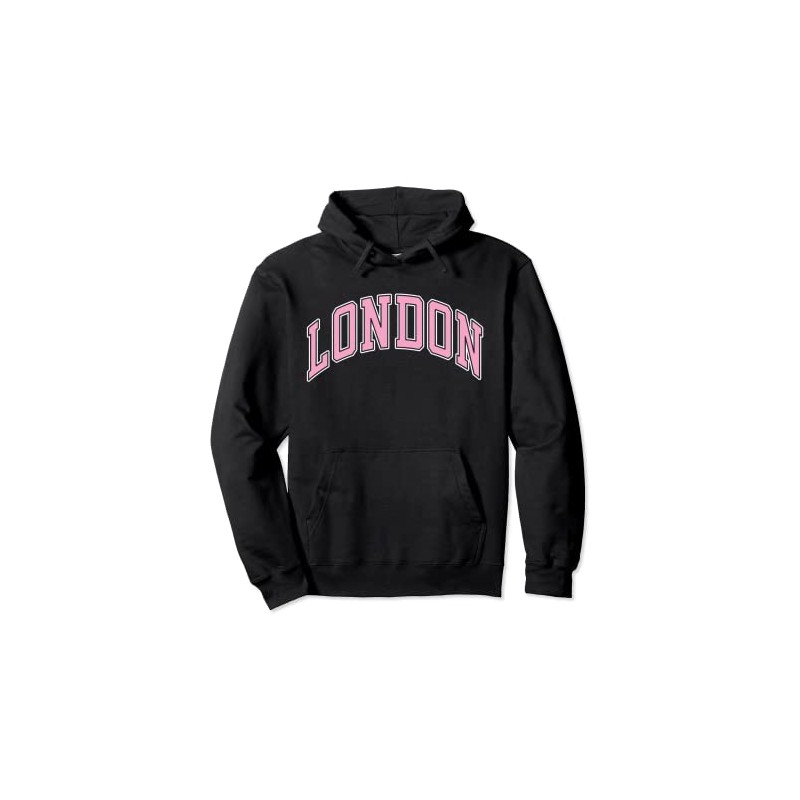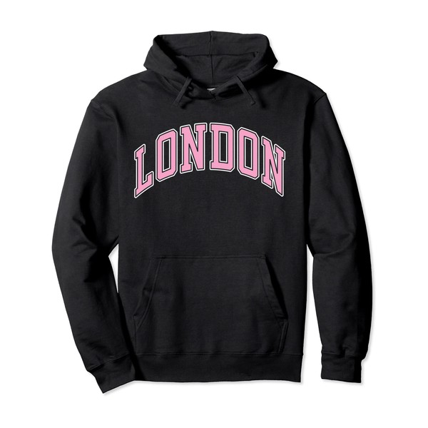 London England UK Varsity Style Pink Text Pullover Hoodie