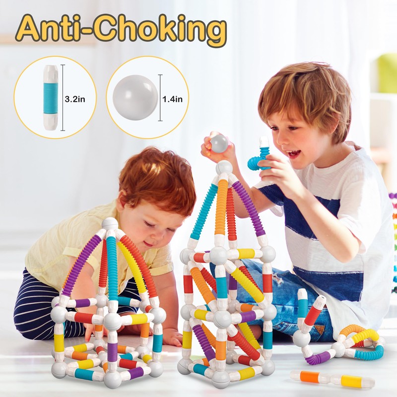 - 【Versatile Assembly Fun】: The retractable tube design and magnetic force enhance the toy's fun factor. It can be bent and combined into animals, buildings, and more, inspiring creativity.