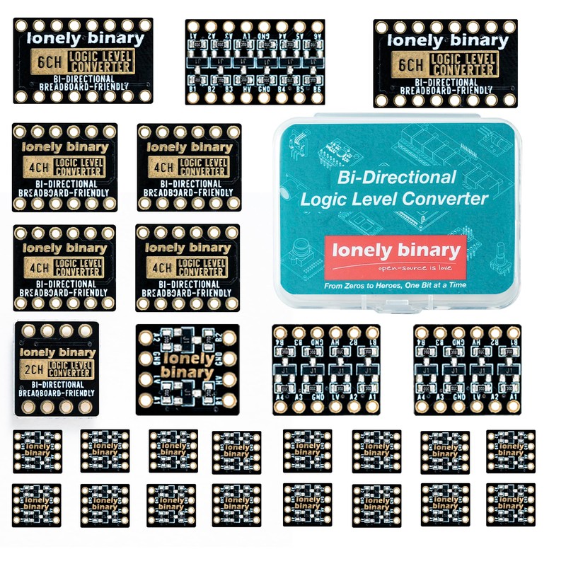 LONELY BINARY 27 Pcs Logic Level Converter Kit - Multi-Channel Bi-Directional 3.3V to 5V Shifter Modules 2/4/6 Channel Lead-Free Gold Edition Logic Level Shifter for Arduino Raspberry Pi ESP32