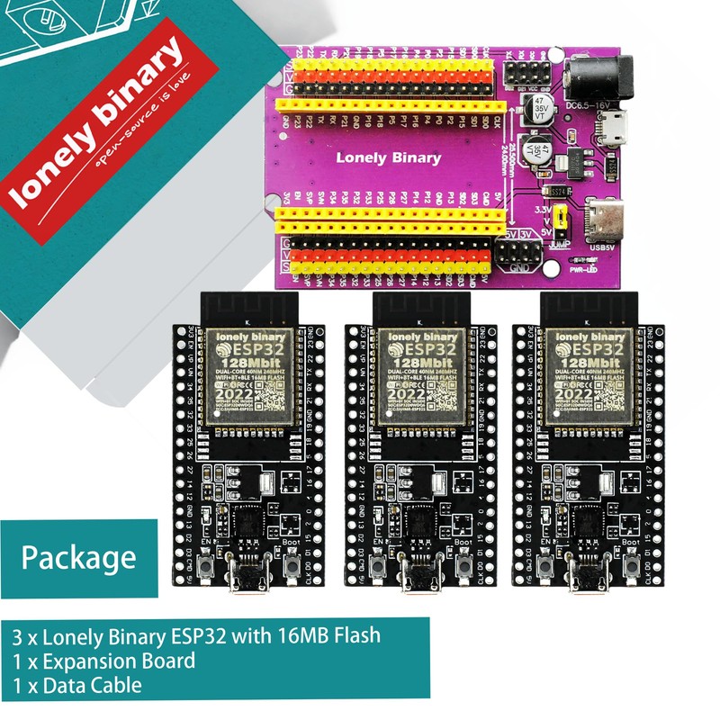 Lonely Binary 3-Pack ESP32 (16MB Flash) + Expansion Board
