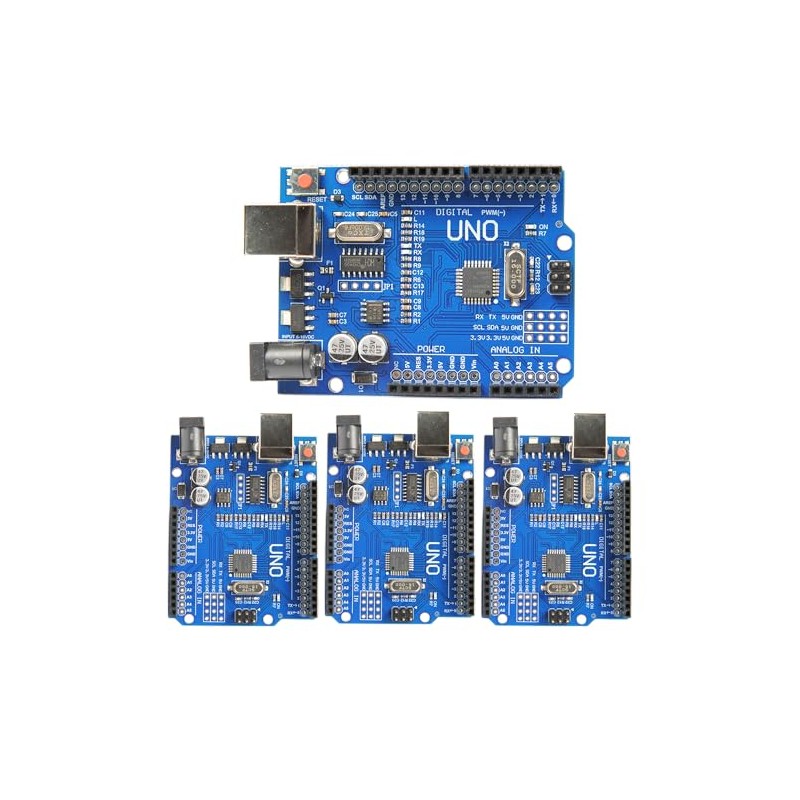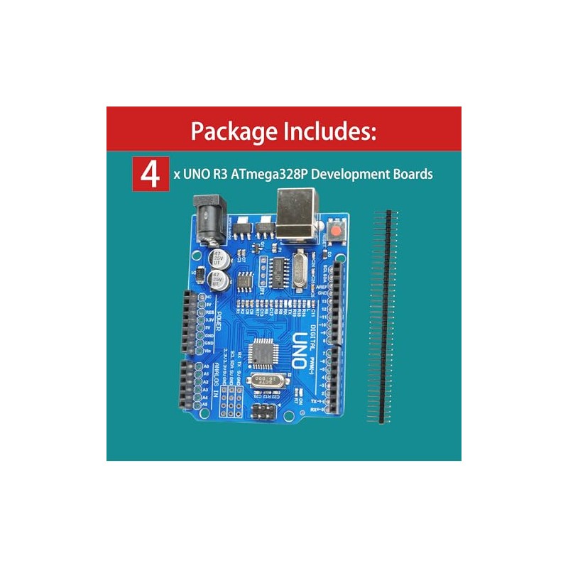 - ✅ Pack of 4 UNO R3 Boards – Includes four fully compatible development boards, ideal for DIY electronics, coding, and educational projects.