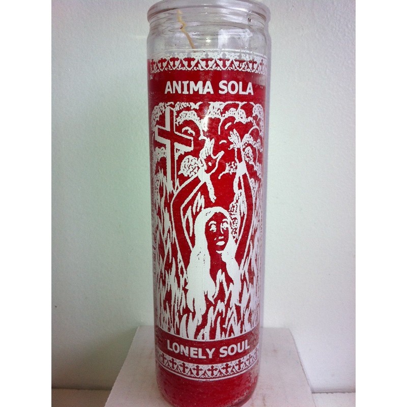 Lonely Sole (Anima Sola) 7 Day Unscented Red Candle in Glass