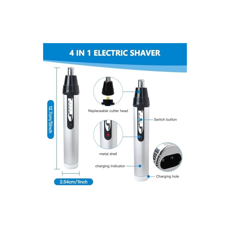 - USB Rechargable: Nose and ear hair trimmer for men & ladies comes with rechargeable USB cable and built-in battery to make sure sufficient power at anytime anywhere, without buying more batteries