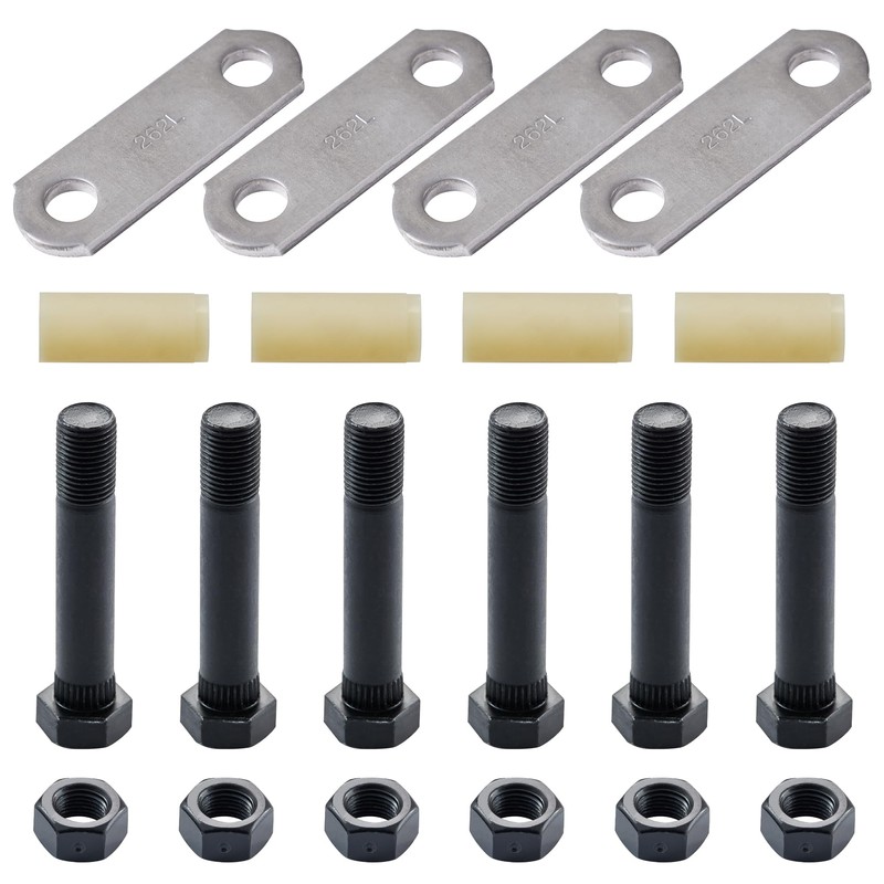 - PACKAGE INCLUDES: (4) 262L Shackle straps, (4) EQ-E1 bushing, (6) 9/16 Bolts and nuts