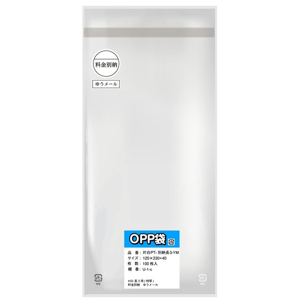[Long 3] Single-Sided White OPP Bag with Price Payment Envelopes Marked Printed [Mark White Solid / 1 Pay Per Fee Yu Mail] Bent Processing Extra Thick 50 Microns, 4.7 x 9.1 x 1.6 inches (120 x 230 +