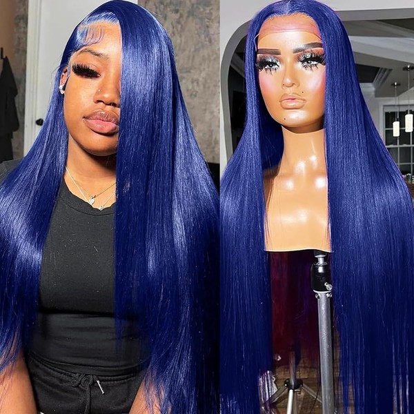 - Straight Blue Lace Front Wigs Human Hair Material: 100% unprocessed Brazilian virgin glueless human hair wigs for black women, cut directly from young girls head, can be worn for a long time, comfortable to the skin, soft and bouncy, natural and healthy. Make you more charming. Rest assured to buy.