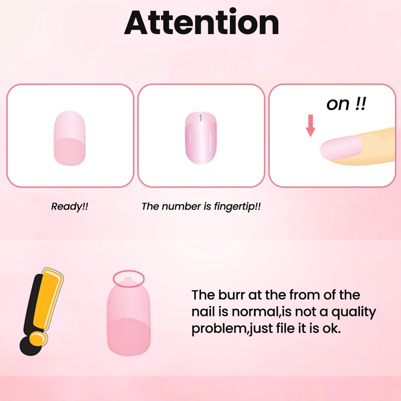 Apply the Nails: Stick a jelly glue sticker on your nail, attach the fake nail from root to tip, and press firmly.