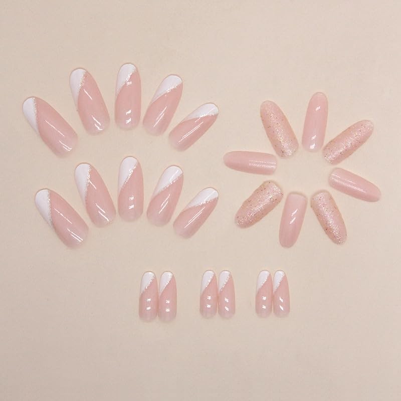 - Complete Nail Press-On Pack: Each set includes 24 pieces of almond press-on nails in 12 different sizes, 1 stick of glue, 1 nail file, 1 sheet of jelly glue, 1 cleaning cloth, and 1 wooden stick. Note: Jelly glue offers reusability, while liquid glue provides better durability. Choose the appropriate glue for different occasions.
