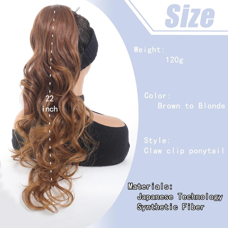 - Long Layered Drawstring Ponytail:22 inch long brown wavy curly drawstring ponytail for black women crafted from Premium Synthetic Fiber Hair, which makes the hair strands lightweight, soft, and also fluffy effect. Which are used to add thickness and length.