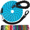 Long Dog Leash 30 FT: Heavy Duty Rope Leashes for Dogs Training with Swivel Lockable Hook Reflective Threads Bungee and Padded Handle - Dog Lead for Large Small Medium Dogs Outside Walking Hiking Blue
