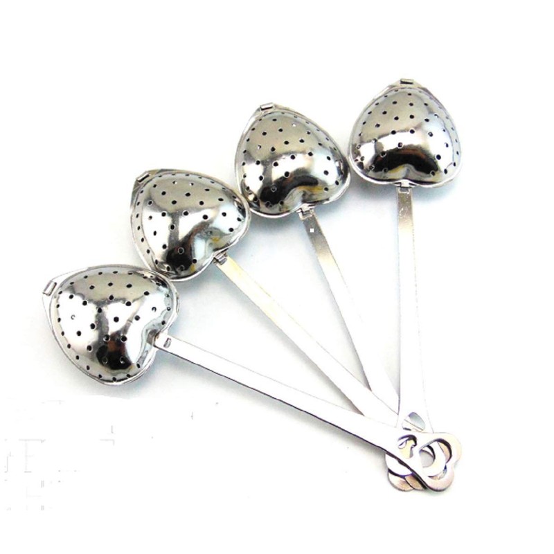 Long Grip Tea Filter, Stainless Steel Heart Shaped Tea Infuser Spoons