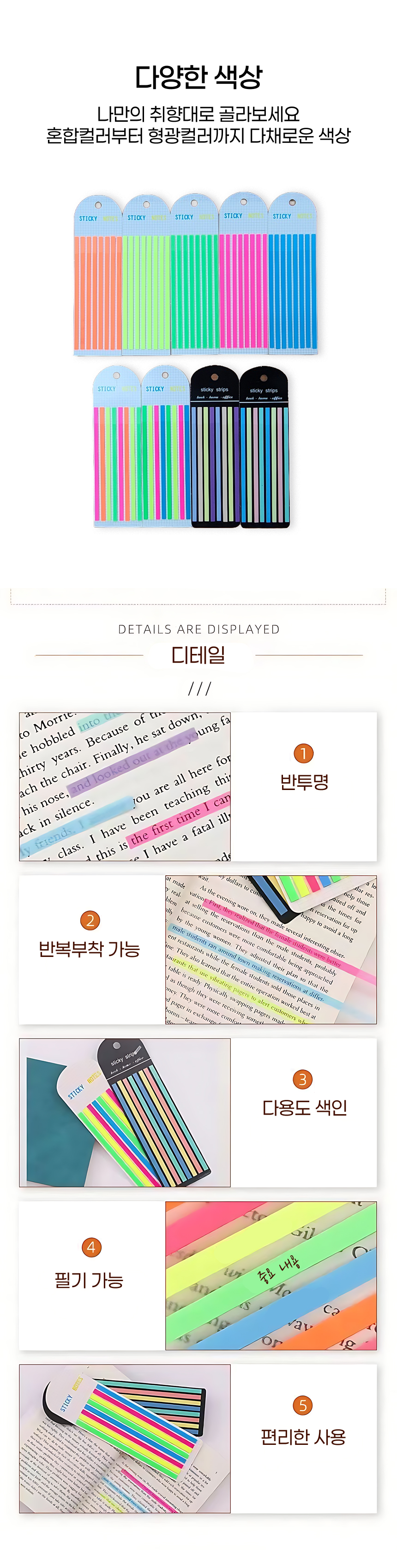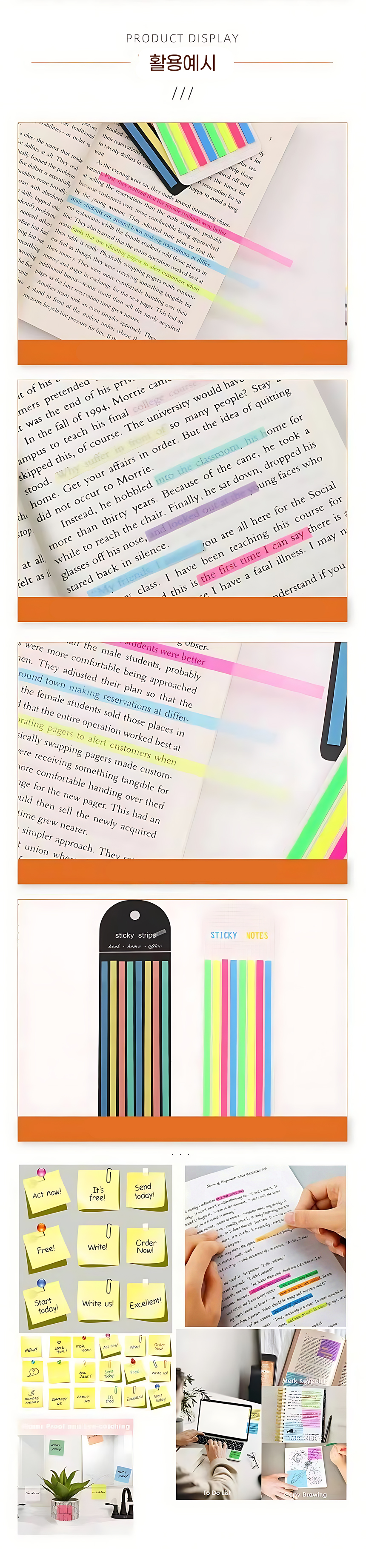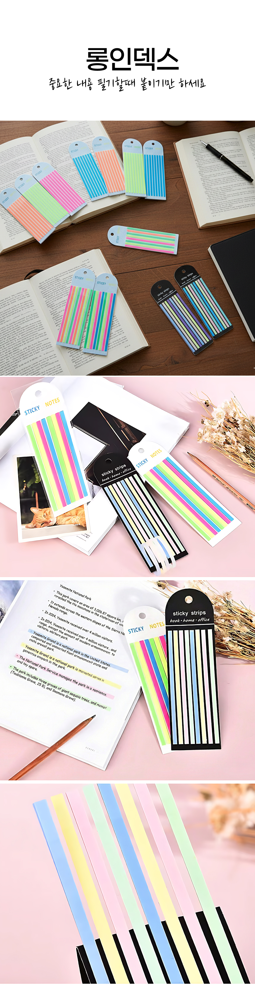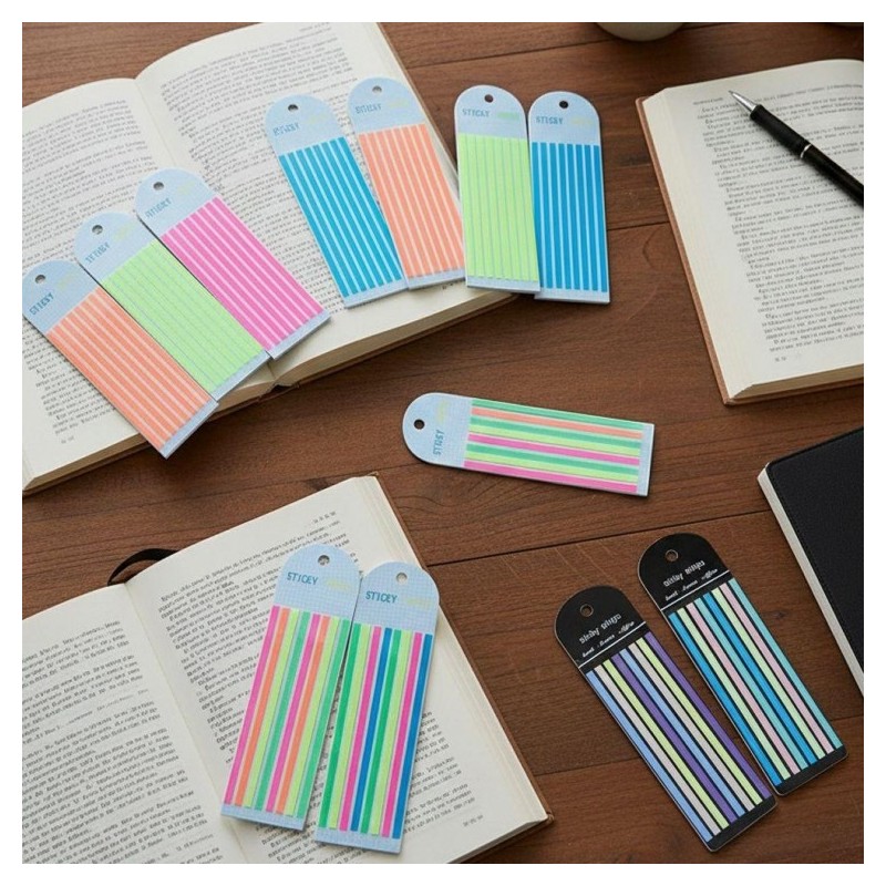 Long Index Book Handwriting Pastel Fluorescent Thin Translucent Sticky Underline Sticker Note Summary Fluorescent Green Set - 1 piece 2ea