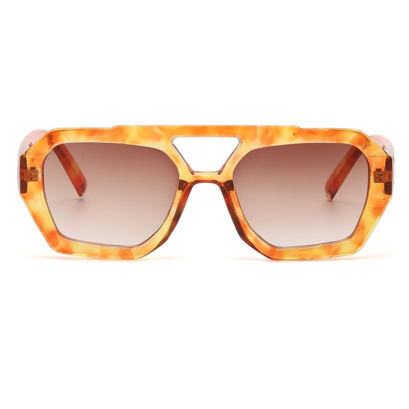 Long Keeper Retro Pilot 70s Sunglasses for Women Men square Thick Frame Trendy Hexagonal Double Bridge Sun Glasses (Leopard Gradient Brown)
