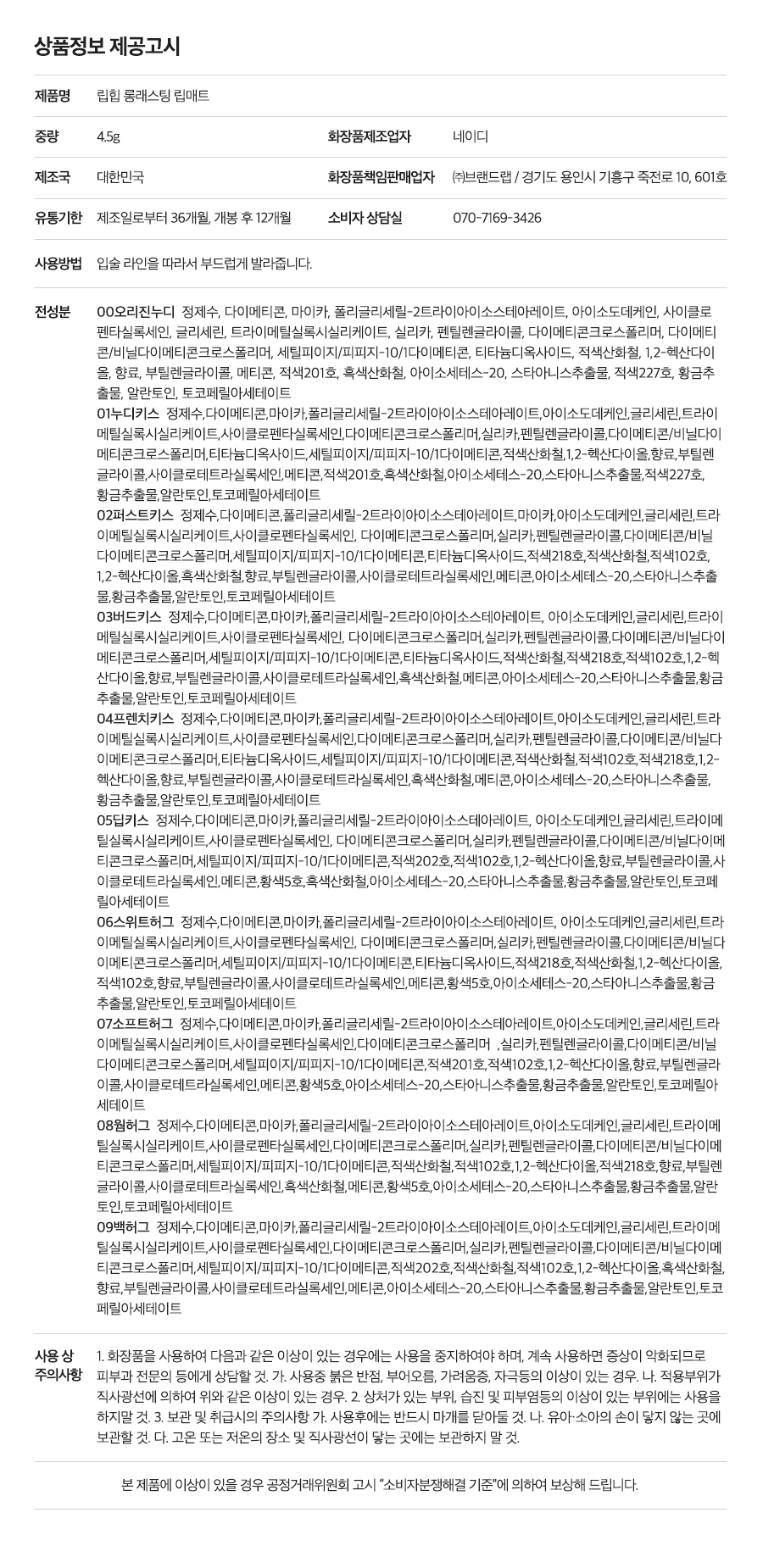 Long-lasting lip mat velvet tint 4.5g / 롱래스팅 립매트 벨벳틴트 4.5g