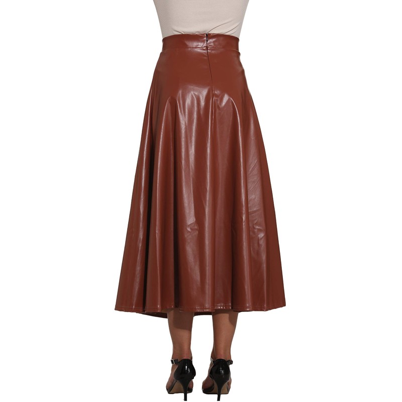 Long Leather Skirt - Faux Leather Skirt, bronze