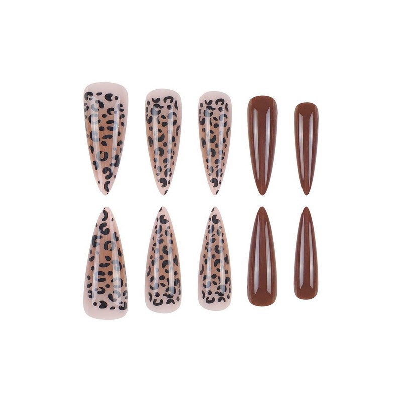 Long Nails Press on Stiletto Brown Fake Nails False Nails with Leopard Print Designs Autumn Acrylic Nails Fall Glossy Glue on Nails for Women Girls 24Pcs