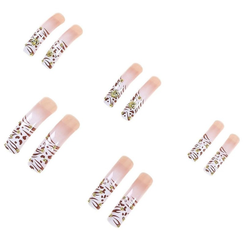 Long Press on Nails Curved Nail Tips False Nails French Tip Fake Nails with Leopard Designs Stick on Nails with Charm Glue on Nails Cute Glossy Artificial Nails for Women 20pcs