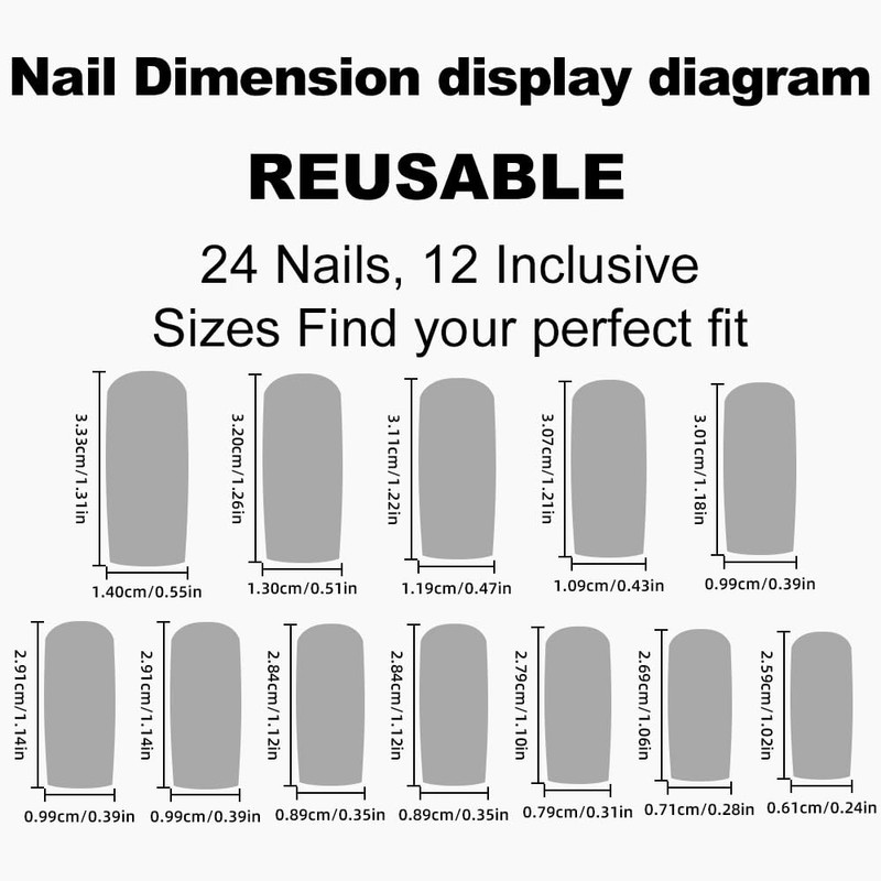 - High - Quality Construction:Made from top - notch materials, these full - cover fake nails are built to last. The durable construction ensures they resist breakage and maintain their shape even during daily wear. The 24 - piece set provides you with an ample supply for multiple manicures, allowing you to experiment with different looks or replace any damaged nails effortlessly. The high - quality materials also contribute to a comfortable fit, so you can wear them all day without discomfort.