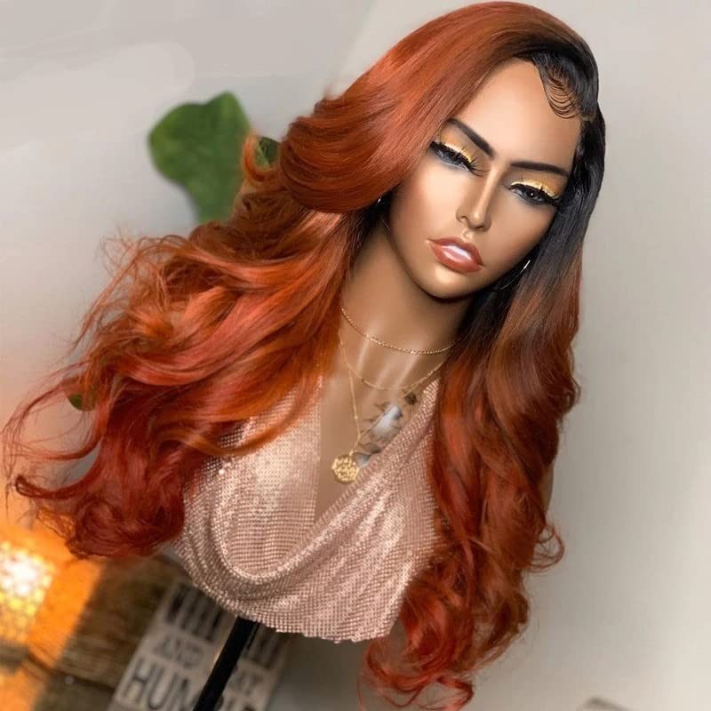 Long Romantic Bodywave Orange Ginger 13x6 Lace Front 100% Brazillian Human Hair Wigs for Black Women Transparent HD Lace Wig 180% Density Pre Plucked Clean Hairline and Bleached Knots by YOKADA HAIR (20inch, 13x4 Lace Front Wig)